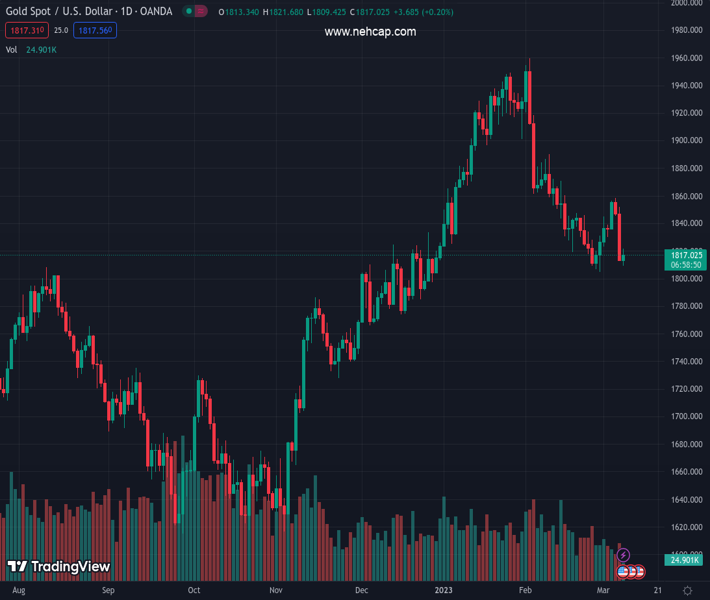 Gold fell sharply following the hawkish comments from the Fed Chair Powell. Strategists at TD Securities note that the yellow metal could suffer additional losses on a dip below the $1,806 mark.