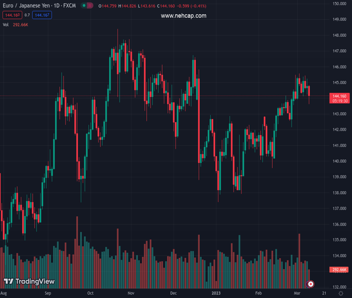 EURJPY currently trading at 144.02 at the time of writing. Pair opened at 144.76 and is trading with a change of -0.51 % .