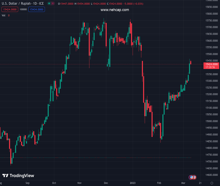 USDIDR currently trading at 15439 at the time of writing. Pair opened at 15441.65 and is trading with a change of -0.02% % .
