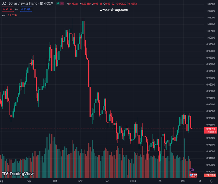 USDCHF currently trading at 0.9322 at the time of writing. Pair opened at 0.9339 and is trading with a change of -0.18% % .
