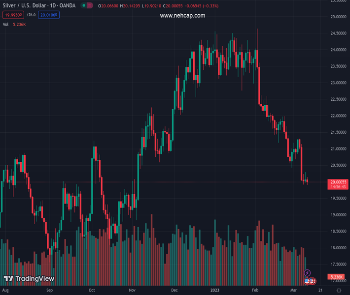 XAGUSD currently trading at 19.98 at the time of writing. Pair opened at 20.06 and is trading with a change of -0.40% % .