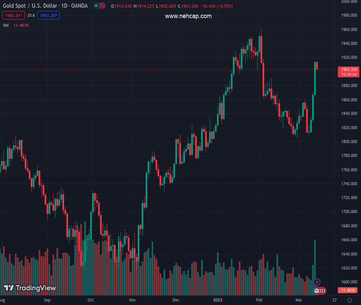 XAUUSD currently trading at 1903.0 at the time of writing. Pair opened at 1913.77 and is trading with a change of -0.56 % .