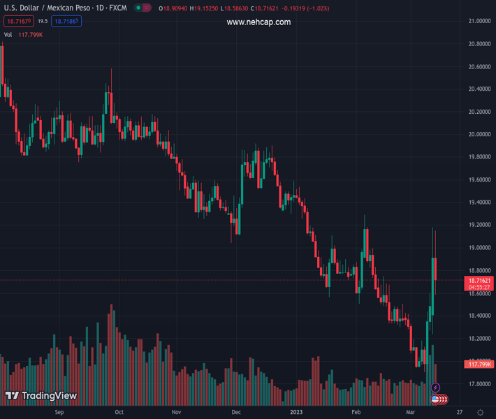 The Mexican Peso (MXN) states a recovery after the bank crisis in the United States (US) appears to calm, as a risk-on impulse underpinned global equities. The CBOE Volatility Index (VIX) has fallen from weekly highs of 30.81 to the 23.00 region, while inflation figures in the US ticked down. At the time of writing, the USD/MXN is trading at 18.6200.
