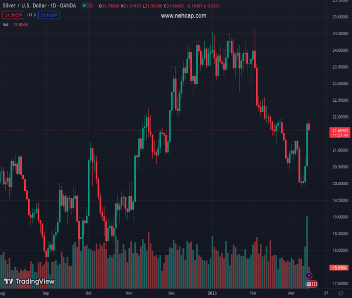 XAGUSD currently trading at 21.67 at the time of writing. Pair opened at 21.82 and is trading with a change of -0.69 % .