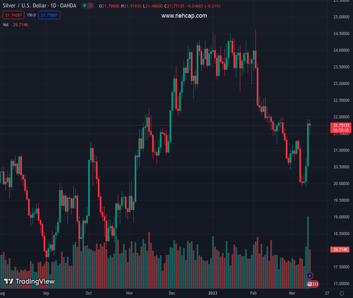 XAGUSD currently trading at 21.65 at the time of writing. Pair opened at 21.82 and is trading with a change of -0.78 % .