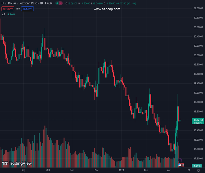 USDMXN currently trading at 18.6173 at the time of writing. Pair opened at 18.6004 and is trading with a change of 0.09% % .