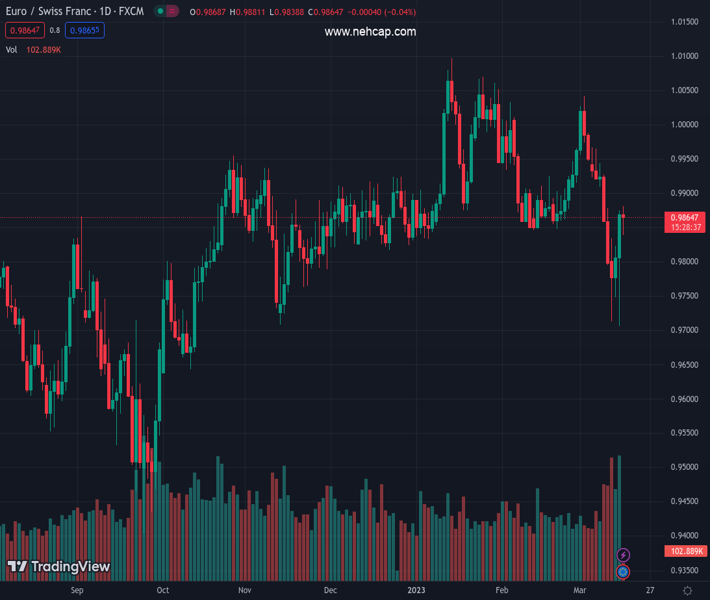 EURCHF currently trading at 0.9862 at the time of writing. Pair opened at 0.9872 and is trading with a change of -0.1 % .