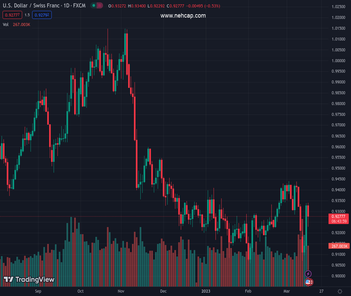 USDCHF currently trading at 0.9279 at the time of writing. Pair opened at 0.9331 and is trading with a change of -0.56 % .