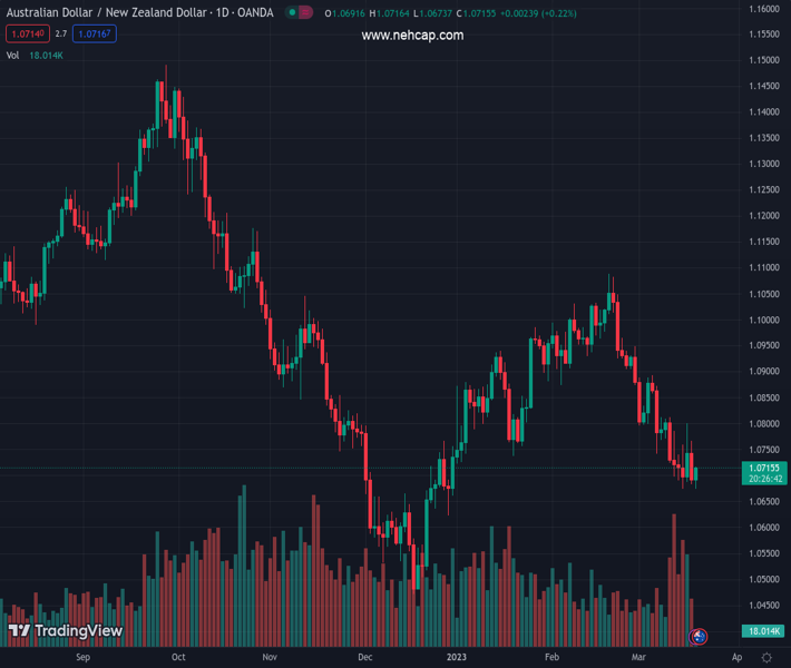 AUDNZD currently trading at 1.0702 at the time of writing. Pair opened at 1.0682 and is trading with a change of 0.19 % .
