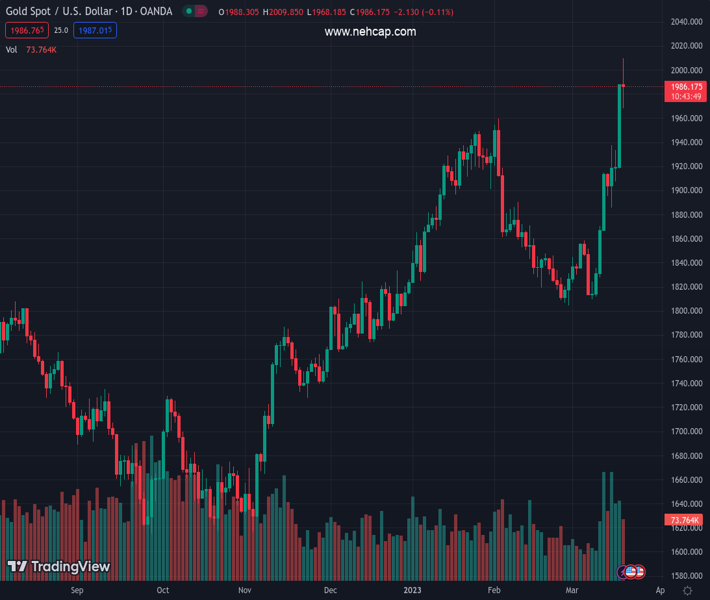 Gold price bulls have been the biggest beneficiaries of the international banking crisis that has taken over the financial markets in the past week. The bright metal has rallied more than 10% since March 8 and reached the round $2,000 level on Monday during the European trading session. Gold is nearing its double-top all-time highs from summer 2020 and March 2022 as traders try to find refuge in the most traditional safe-haven asset, ditching cash in the process.