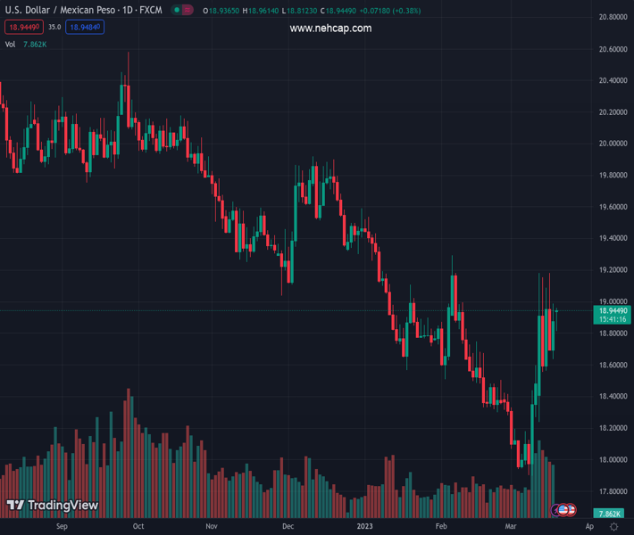USDMXN currently trading at 18.9452 at the time of writing. Pair opened at 18.9028 and is trading with a change of 0.22% % .