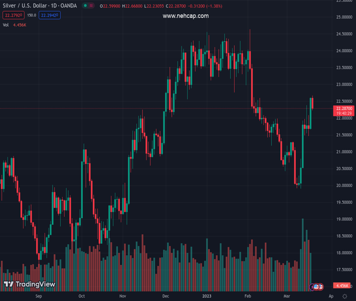 XAGUSD currently trading at 22.33 at the time of writing. Pair opened at 22.61 and is trading with a change of -1.24% % .