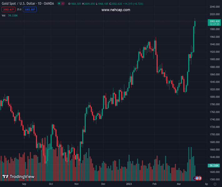 XAUUSD currently trading at 2003.81 at the time of writing. Pair opened at 1989.46 and is trading with a change of 0.72 % .