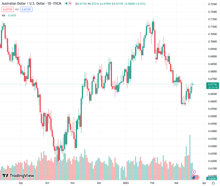 AUD/USD floats near two-week high past 0.6700 as fears of banking collapse ease, RBA Minutes eyed