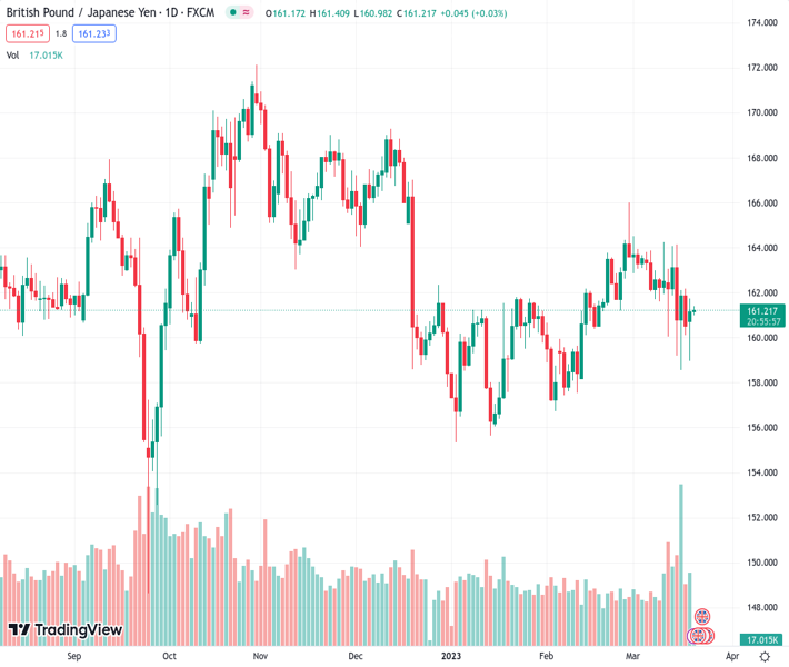 GBPJPY currently trading at 161.24 at the time of writing. Pair opened at 160.51 and is trading with a change of 0.45 % .