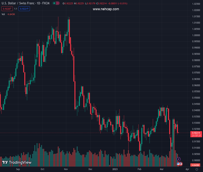 USDCHF currently trading at 0.9223 at the time of writing. Pair opened at 0.9291 and is trading with a change of -0.73 % .