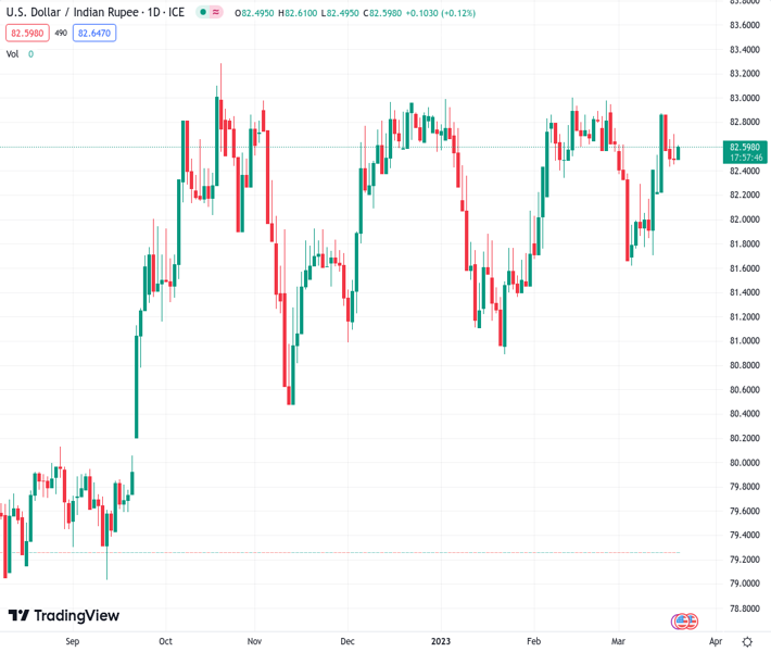 #USDINR @ 82.6150 struggles with 83.00 resistance amid Indian Rupee’s bearish pressure.