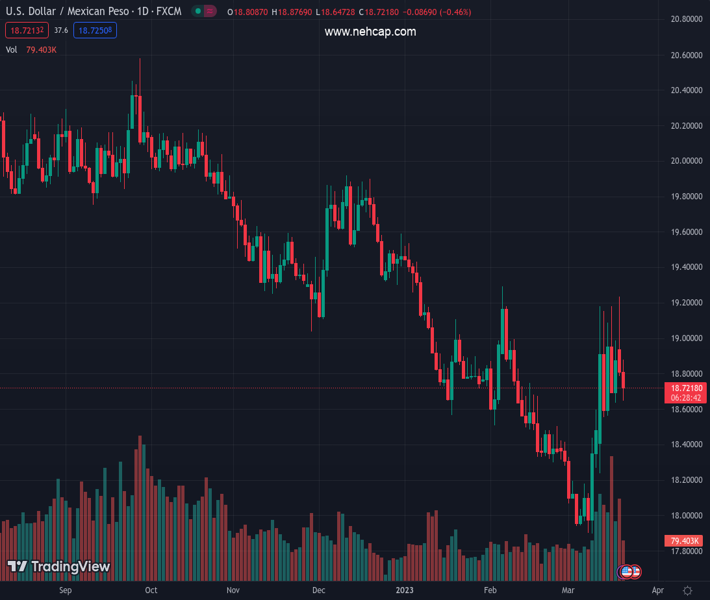 USDMXN currently trading at 18.7468 at the time of writing. Pair opened at 18.8231 and is trading with a change of -0.41 % .