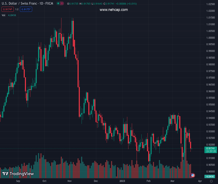 USDCHF currently trading at 0.9173 at the time of writing. Pair opened at 0.9224 and is trading with a change of -0.55% % .