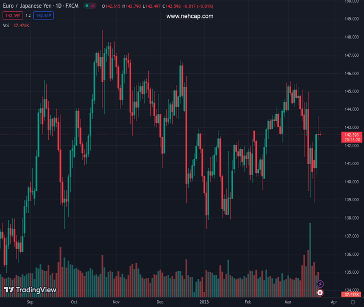 EURJPY currently trading at 142.62 at the time of writing. Pair opened at 142.66 and is trading with a change of -0.03 % .