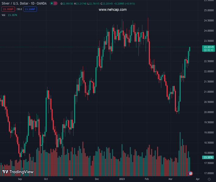 XAGUSD currently trading at 23.17 at the time of writing. Pair opened at 22.97 and is trading with a change of 0.87 % .