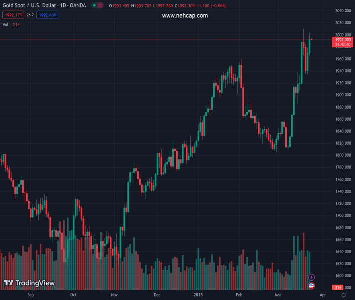 XAUUSD currently trading at 1993.19 at the time of writing. Pair opened at 1970.35 and is trading with a change of 1.16 % .