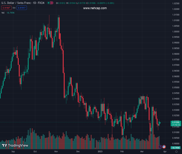 USDCHF currently trading at 0.9191 at the time of writing. Pair opened at 0.9196 and is trading with a change of -0.05 % .