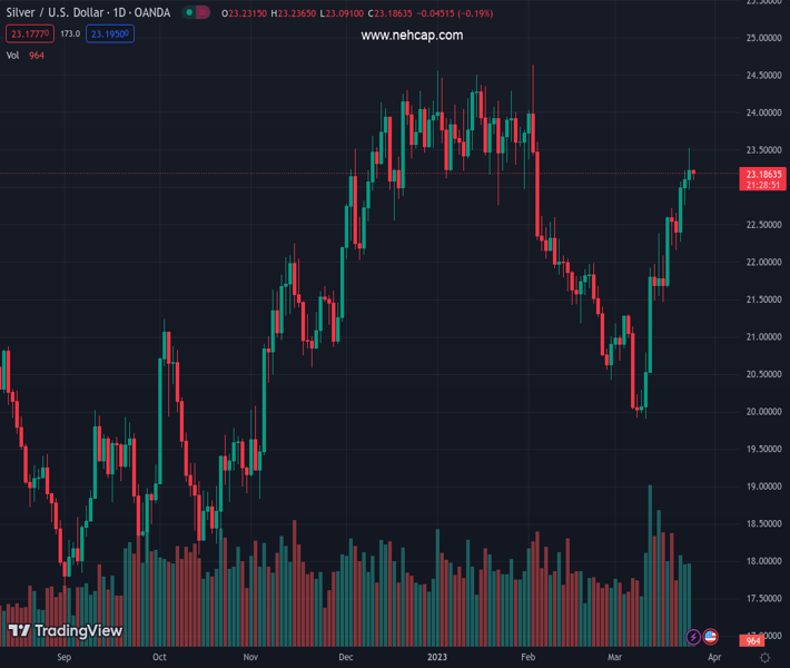 XAGUSD currently trading at 23.19 at the time of writing. Pair opened at 23.24 and is trading with a change of -0.22% % .
