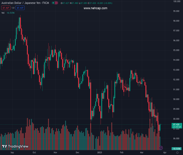AUDJPY currently trading at 87.48 at the time of writing. Pair opened at 86.86 and is trading with a change of 0.71 % .