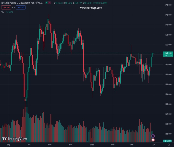 The GBP/JPY pair is gaining 0.53% on Thursday and is trading at 164.29 after hitting a daily low of 162.96. The pair’s uptrend is attributed to the market’s current risk-on sentiment and expectations that central banks will pause hiking rates after the recent banking turmoil in the US and Switzerland.