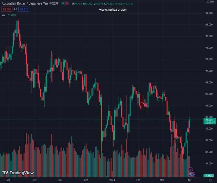 AUDJPY currently trading at 89.79 at the time of writing. Pair opened at 88.83 and is trading with a change of 1.08 % .