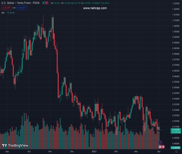 USDCHF currently trading at 0.9125 at the time of writing. Pair opened at 0.915 and is trading with a change of -0.27% % .