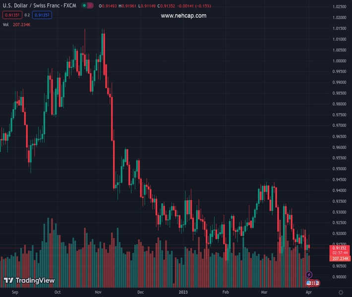 USDCHF currently trading at 0.9135 at the time of writing. Pair opened at 0.915 and is trading with a change of -0.16 % .