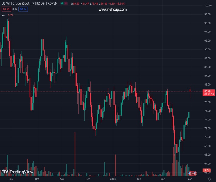 XTIUSD currently trading at 80.5 at the time of writing. Pair opened at 75.76 and is trading with a change of 6.26 % .