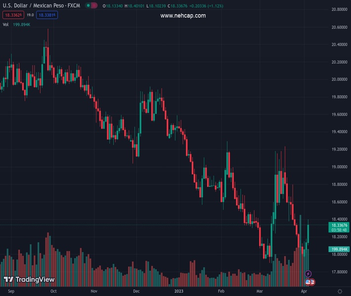 USDMXN currently trading at 18.3516 at the time of writing. Pair opened at 18.1366 and is trading with a change of 1.19 % .