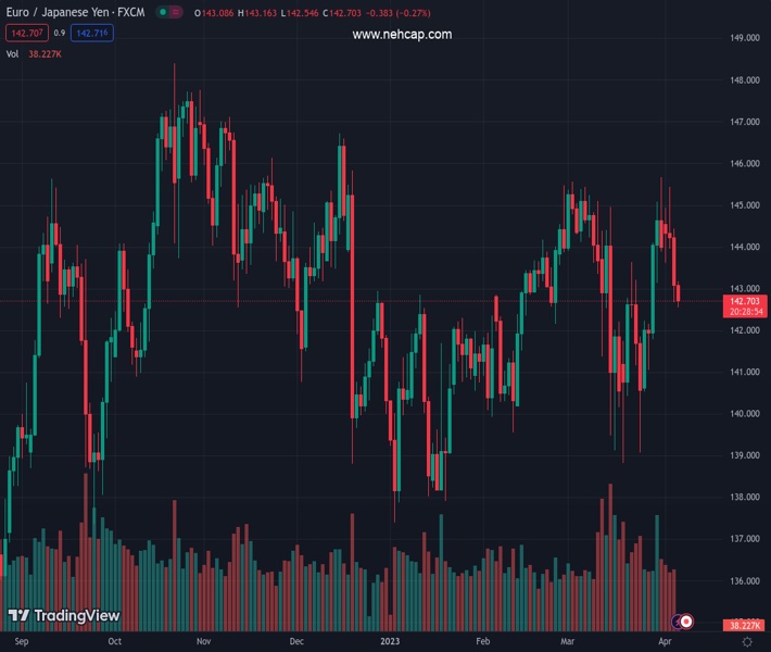 EURJPY currently trading at 142.62 at the time of writing. Pair opened at 143.06 and is trading with a change of -0.31 % .