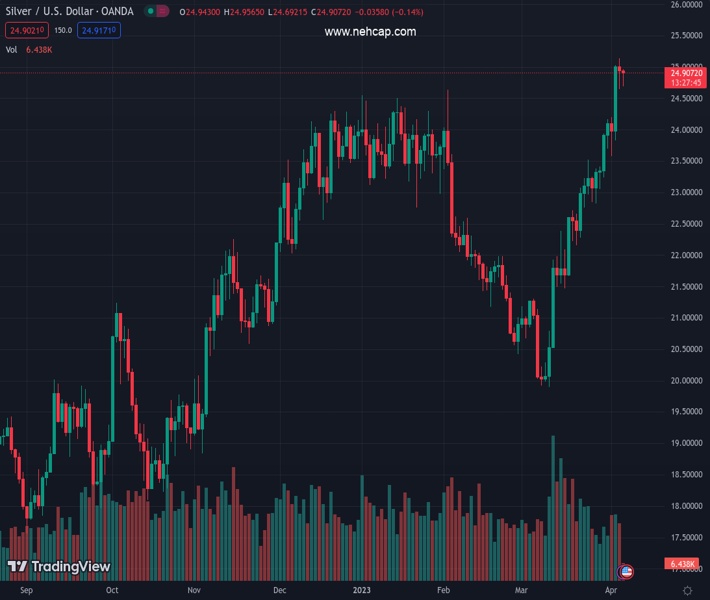 XAGUSD currently trading at 24.84 at the time of writing. Pair opened at 24.94 and is trading with a change of -0.4 % .