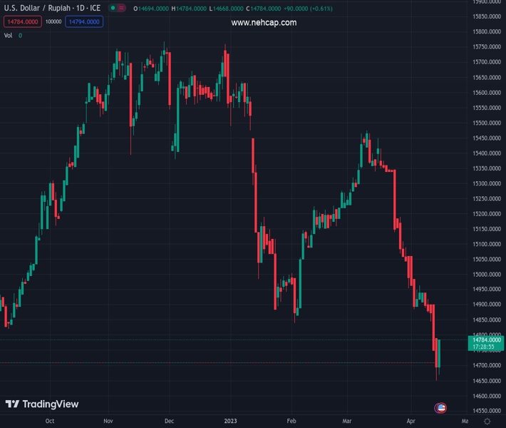 USDIDR currently trading at 14803.05 at the time of writing. Pair opened at 14782.55 and is trading with a change of 0.14% % .