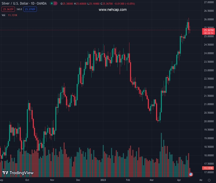 XAGUSD currently trading at 25.44 at the time of writing. Pair opened at 25.37 and is trading with a change of 0.28 % .