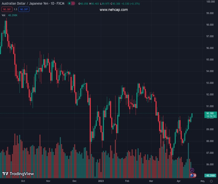 AUDJPY currently trading at 90.23 at the time of writing. Pair opened at 90.1 and is trading with a change of 0.14 % .
