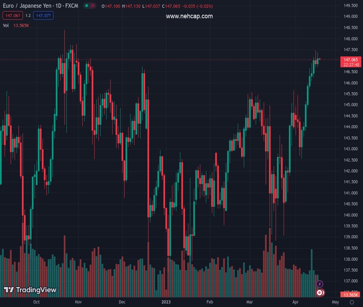 EURJPY currently trading at 147.09 at the time of writing. Pair opened at 146.93 and is trading with a change of 0.11 % .