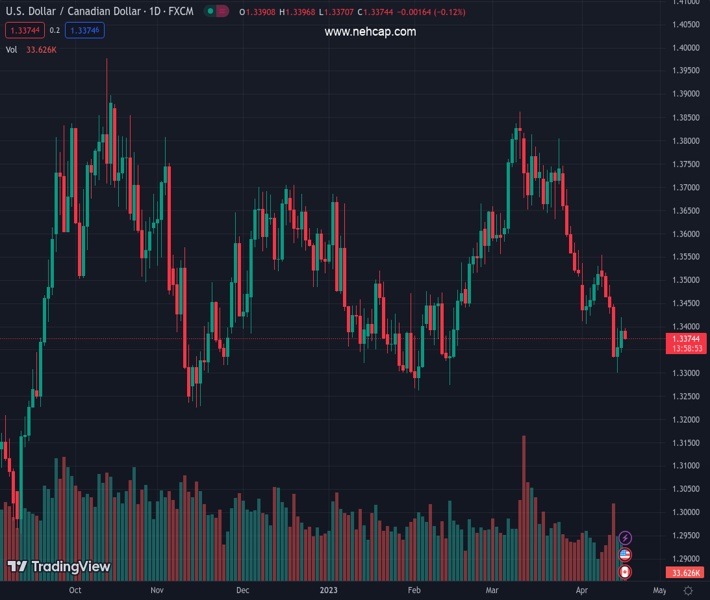 USDCAD currently trading at 1.3373 at the time of writing. Pair opened at 1.3394 and is trading with a change of -0.16% % .