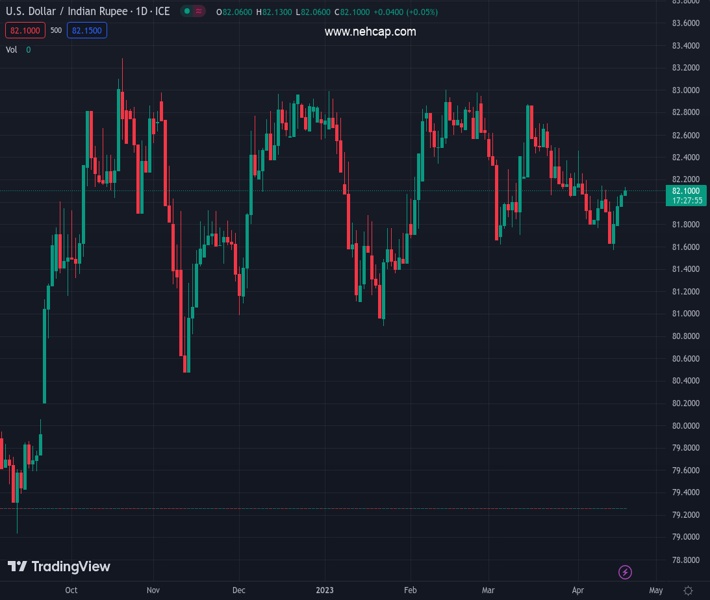 USDINR currently trading at 82.1285 at the time of writing. Pair opened at 82.1058 and is trading with a change of 0.03 % .