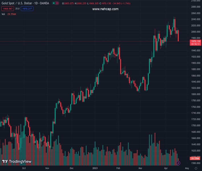 XAUUSD currently trading at 1970.39 at the time of writing. Pair opened at 2005.42 and is trading with a change of -1.75 % .