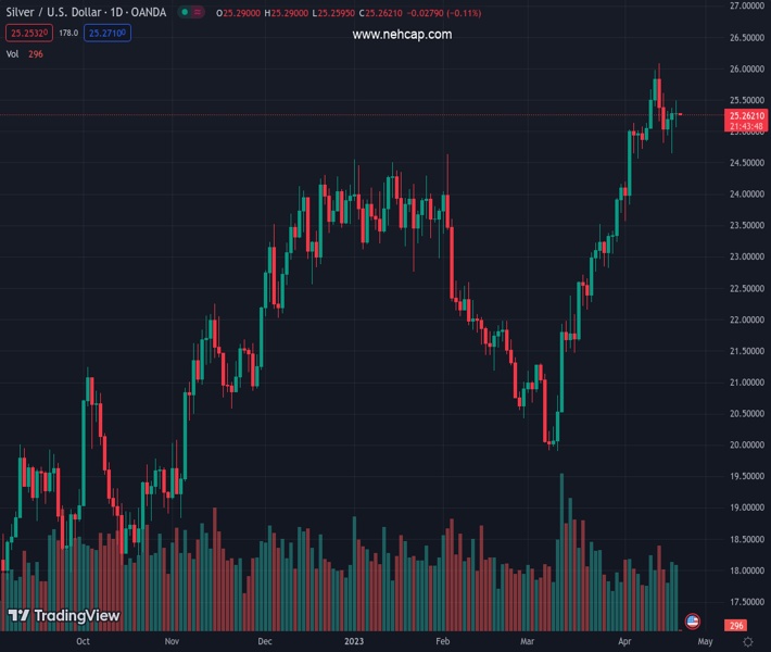 XAGUSD currently trading at 25.28 at the time of writing. Pair opened at 25.29 and is trading with a change of -0.04 % .
