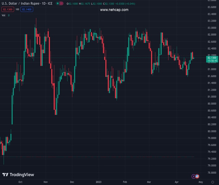 USDINR currently trading at 82.154 at the time of writing. Pair opened at 82.1482 and is trading with a change of 0.01 % .