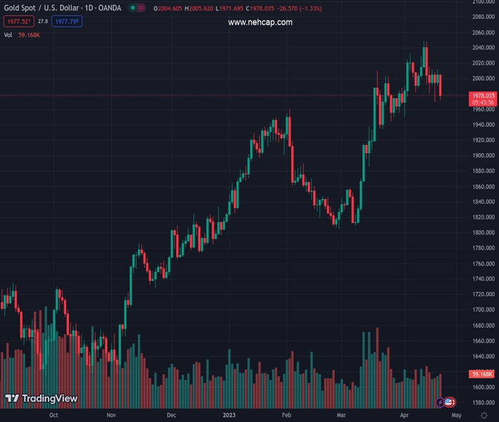 XAUUSD currently trading at 1978.93 at the time of writing. Pair opened at 2004.8 and is trading with a change of -1.29 % .
