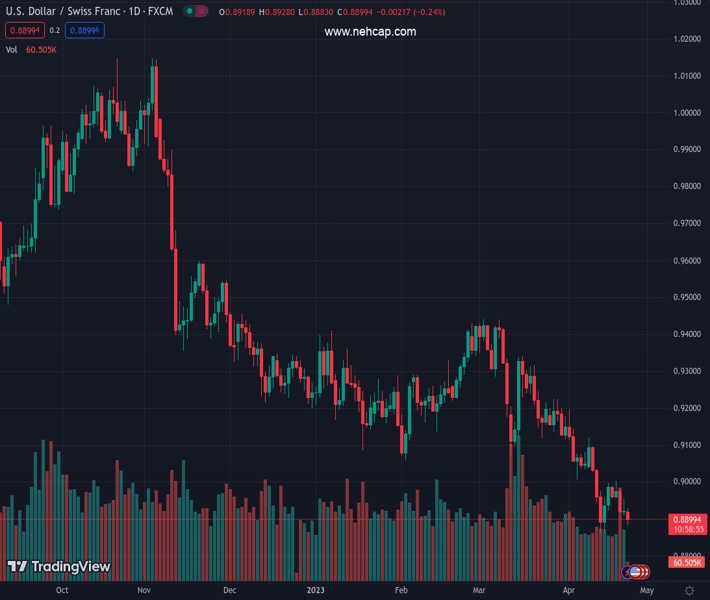 USDCHF currently trading at 0.8889 at the time of writing. Pair opened at 0.8922 and is trading with a change of -0.37 % .