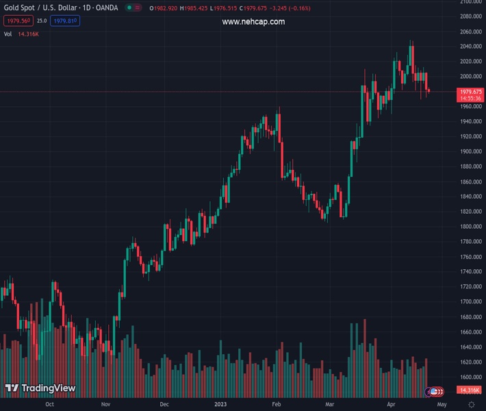 XAUUSD currently trading at 1977.76 at the time of writing. Pair opened at 1983.02 and is trading with a change of -0.27 % .