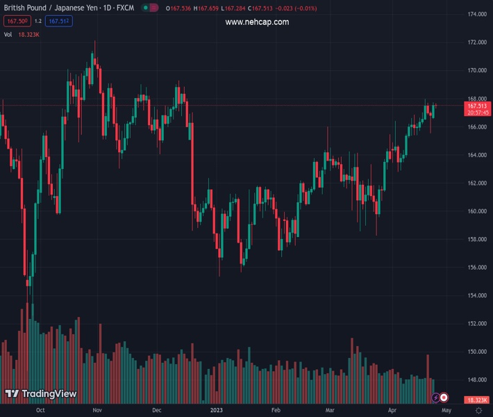 GBPJPY currently trading at 167.5 at the time of writing. Pair opened at 166.88 and is trading with a change of 0.37 % .